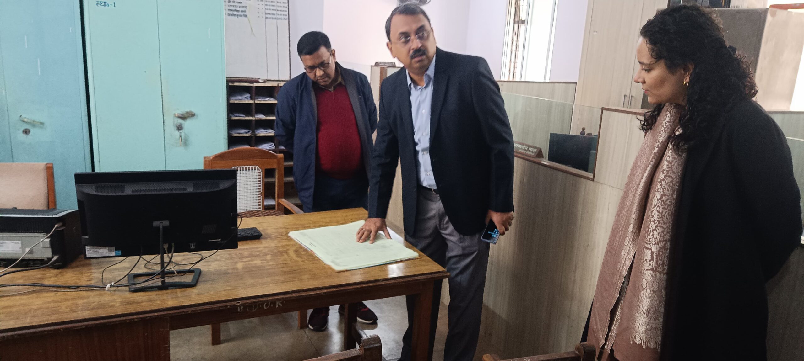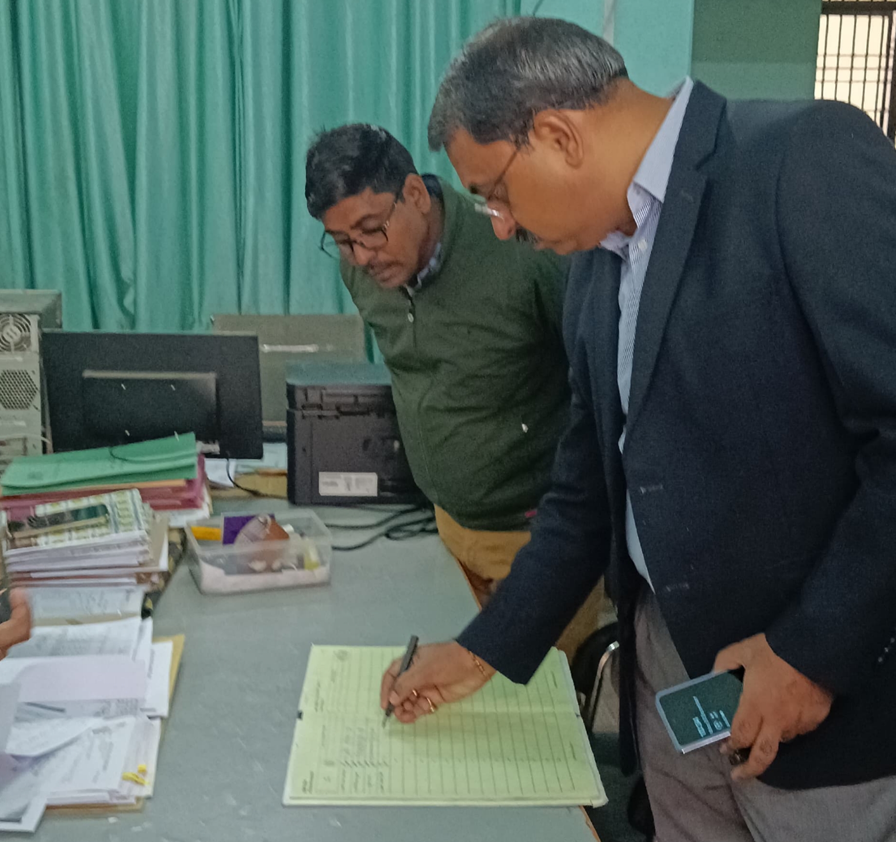 जिलाधिकारी विशाल भारद्वाज द्वारा आज प्रातः 10.15 बजे उप निबंधक कार्यालय सदर, तहसील सदर (पडरौना) तथा विकास भवन स्थित विभिन्न कार्यालयों का आकस्मिक निरीक्षण किया गया। निरीक्षण के दौरान कार्यालयों में अधिकारियों एवं कर्मचारियों की उपस्थिति पंजिका, विभिन्न पटलों, अभिलेखों के रख रखाव का उचित प्रबन्धन, परिसर एवं कार्यालयों की सफाई व्यवस्था, अग्निशमन तथा अग्नि सुरक्षा के दृष्टिगत व्यवस्था का स्थलीय निरीक्षण किया गया। उपनिबंधक कार्यालय सदर पडरौना में उप निबंधक अजय कुमार सिंह समेत निबंधक सहायक
