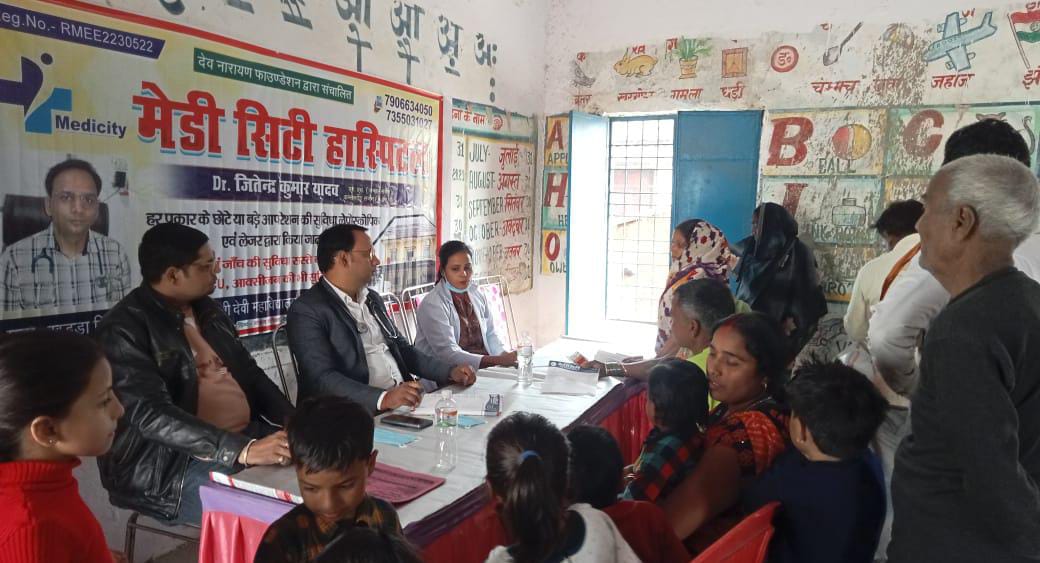 गया। डॉक्टर जितेंद्र यादव ने कहा कि इस शिविर में लगभग 400 से अधिक लोगों ने अपना पंजीकरण कराकर विभिन्न प्रकार की बीमारियों का इलाज और जांच आए हुए बेहतर डॉक्टरों की टीम से कराया। इस शिविर में बेहतरीन डॉक्टरों की टीम आए हुए लोगों की समस्याओं को सुनकर उनको हुए बीमारियों को जड़ से ठीक करने के उपचार सहित दवाएं दिए। डॉक्टर जितेंद्र यादव ने बताया कि हमारे हॉस्पिटल द्वारा निःशुल्क दवा, जांच उपचार और परामर्श गरीब, असहाय, निर्धन व्यक्तियों सहित आए हुए सभी लोगों को इलाज किया गया। उन्होंने कहा कि हमारी टीम द्वारा यह प्रयास किया जा रहा है कि ताकि किसी भी व्यक्ति को कोई भी बीमारी का स्टेज शुरू होने से पहले ही उसे खत्म किया जा सके। उन्होंने कहा कि हमारी टीम द्वारा लगाए गए निःशुल्क शिविर में आकर आप अपनी बीमारियों को बताकर दवा लें और उपचार के साथ परामर्श और इलाज कराकर अपने को स्वस्थ बनाएं। जांच और दवा मिलने के बाद ग्रामीणों को हुए लाभ से उनके चेहरे खिल गए और डॉक्टर की टीम को धन्यवाद ज्ञापित किया। इस दौरान रामबाबू गुप्ता, डॉक्टर पूजा शर्मा देवेंद्र चौधरी , सतीश यादव नित्यानंद यादव आदि मेडिकल स्टाफ मौजूद रहे और लोगों का उपचार किया।
