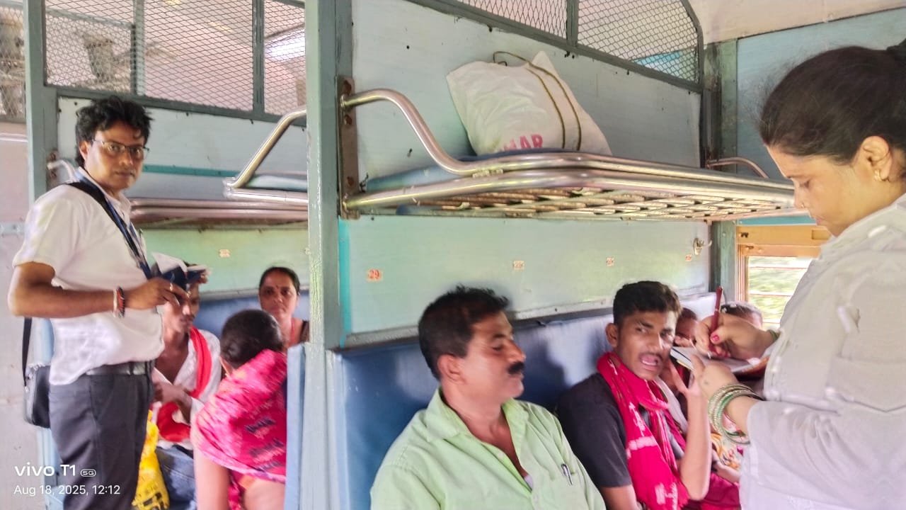 सघन रेलवे टिकट जाँच अभियान में 105 बिना टिकट पकड़े गये, वसूले गए अठाईस हजार पांच सौ पचहत्तर रूपये का जुर्माना