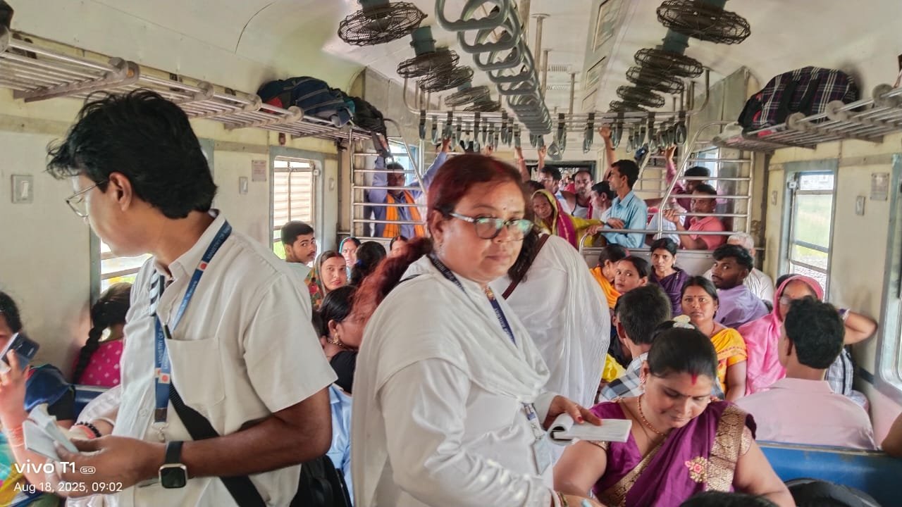 Daktimes News : मंडल रेल प्रबंधक आशीष जैन के निर्देशन एवं वरिष्ठ मंडल वाणिज्य प्रबंधक शेख रहमान के नेतृत्व में दिनाँक 18 अगस्त,2025 सोमवार को सीवान-थावे-छपरा कचहरी रेल खण्ड स्टेशन को आधार बनाकर इस खण्ड पर पड़ने वाले स्टेशनों थावे,तमकुही रोड, दिघवादुबौली, मशरख एवं छपरा कचहरी की सीमाओं को सील करके सघन टिकट चेकिंग अभियान चलाया गया। इस दौरान थावे-नकहां जंगल रेल खण्ड पर चलने वाली डेमू गाड़ी सं-75105, गोरखपुर कैन्ट-सीवान रेल खण्ड पर चलने वाली सवारी गाड़ी सं-55036, थावे-छपरा कचहरी रेल खण्ड पर चलने वाली सवारी गाड़ी 55109 एवं 551015 सहित विभिन्न सवारी गाड़ियों में किलाबन्दी कर सघन  टिकट चेकिंग की गई है। इस टिकट जांच अभियान टीम में मंडल वाणिज्य निरीक्षक, सीवान श्री प्रणव प्रभाकर, मंडल वाणिज्य निरीक्षक/थावे श्री विशाल कुमार सिंह के साथ टिकट जाँच दल में मुख्य टिकट निरीक्षक/ थावे एवं सीवान समेत 05 टिकट जाँच कर्मचारियों एवं रेलवे सुरक्षा बल के जवानों के सहयोग से सघन टिकट जांच किया गया और बिना टिकट यात्रा एवं अनियमित टिकट पर यात्रा करने वाले कुल 105 यात्रियों को पकड़ा गया और उनसे रेल राजस्व के रूप में रु 28575 (अठाईस हजार पांच सौ पचहत्तर रूपये) जुर्माना वसूलने के बाद छोड़ा दिया गया । उक्त सघन टिकट जाँच अभियान के दौरान इस खण्ड के स्टेशनों के टिकट काउंटरों पर टिकट लेने के लिए लम्बी कतार लग गई थी । वाराणसी मंडल के वरिष्ठ मंडल वाणिज्य प्रबन्धक शेख रहमान ने आम यात्रियों से अपील की है कि यात्री अपनी यात्रा के दौरान स्वच्छता एवं रेल नियमों का पालन करें और उचित यात्रा टिकट लेकर ही यात्रा करें ।