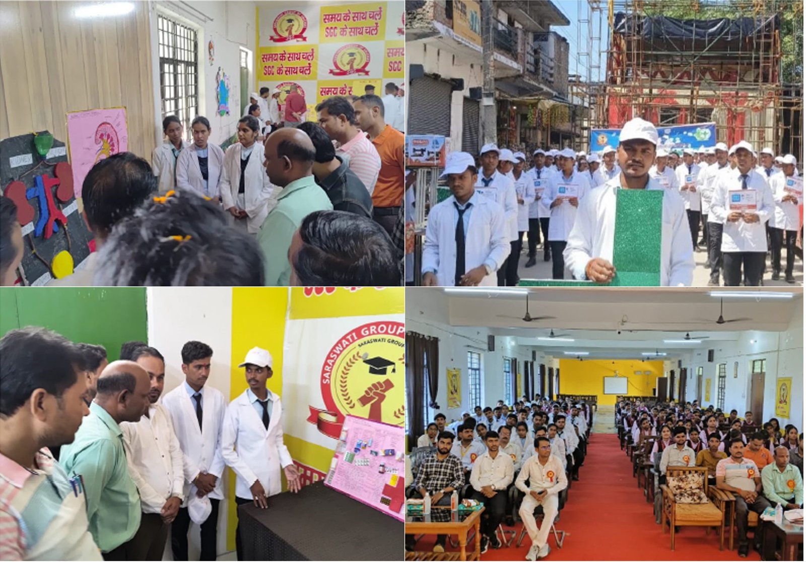 Daktimes News Khadda Kushinagar: आज दिनाँक 25 सितम्बर 2025 दिन गुरुवार को विकास खंड खड्डा में स्थित सरस्वती देवी महाविद्यालय में वर्ल्ड फार्मेसी डे के अवसर पर डी.फार्म विभाग की ओर से विविध कार्यक्रम आयोजित किए गए। जिसमें छात्र छात्राओं द्वारा वर्ल्ड फार्मासिस्ट दिवस 2025 के थीम ‘थिंक हेल्थ थिंक फार्मासिस्ट’ पर आधारित जागरूकता रैली स्थानीय नगर पंचायत खड्डा में निकाली गई। जिसमें छात्र-छात्राओं ने पोस्टर एवं स्लोगन के साथ आमजन को जागरूक किया। रैली की वापसी के पश्चात छात्र-छात्राओं द्वारा दवा विनिर्माण/ दवाओं के डोज तथा स्वास्थ्य सुरक्षा सम्बन्धी प्रदर्शनी में स्थानीय फार्मासिस्ट एवं चिकित्सकगण द्वारा प्रदर्शनी का अवलोकन किया गया। इसके उपरांत वर्ल्ड