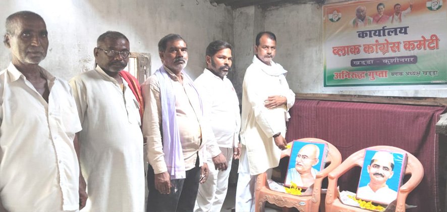 ब्लॉक कांग्रेस कमेटी खड्डा कार्यालय पर मनाई गई महात्मा गांधी जी व लाल बहादुर शास्त्री जी की जयंती