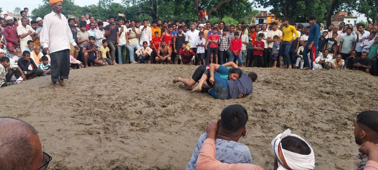 Daktimes News Kaptanganj: बोदरवार में असत्य पर सत्य की विजय और बुराई पर अच्छाई की जीत के पर्व विजयादशमी पर लगने वाला ऐतिहासिक और पारम्परिक दशहरा मेला गुरुवार को मौसम खराब होने के बावजूद भी धूमधाम से सम्पन्न हुआ।इस मेला में रामलीला और कुश्ती का उद्घाटन रामकोला विधायक विनय प्रकाश गोंड़ ने किया। बारिश होने के कारण भीगे अखाड़े में ही दूर दराज से आए पहलवानों ने अपनी कला का प्रदर्शन किया। पुरूष पहलवानों के दस जोड़ में मन्देश पहलवान ने राज पहलवान गम्भीरपूर को चित किया। विशाल ने सचिन को पटखनी दिया।उसी क्रम में बलदेव और सत्या राठौर बराबरी पुरस्कृत हूए। महिला पहलवानों में ईशा गोरखपुर ने काजल हरियाणा को अपनी कला का प्रदर्शन कर आसमान दिखाया। दूसरी महिला पहलवान रिया कुशीनगर और खुशी बनारस के बीच हो रहे कुश्ती