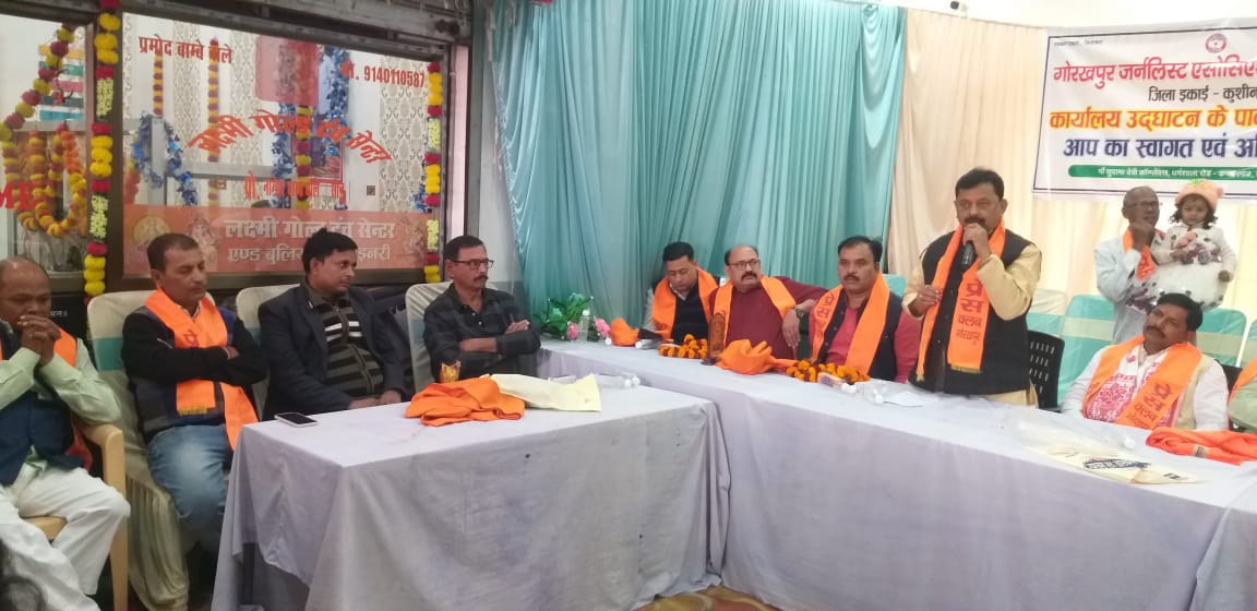 गोजए एंव प्रेस क्लब गोरखपुर के राष्ट्रीय अध्यक्ष रत्नाकर सिंह ने कहा संगठन पत्रकार के परिवारों के साथ सदैव कन्धे से कन्धा मिलाकर खड़ा है।जिला इकाई कुशीनगर के प्रभारी दिनेश यादव ने कार्यालय उपलब्ध कराने के लिए पत्रकार बेचू बीए को साधुबाद देकर कार्यक्रम में उपस्थित पत्रकारों व अतिथियों के प्रति आभार व्यक्त किया। इस मौके पर नवजीत सिंह,अभिषेक कुमार पाण्डेय, मनोज गुप्ता, शम्भू शरण वर्मा, राकेश शर्मा, एस जेड सामानी,शकील अहमद, अजय कन्नौजिया, संतोष कुमार चौधरी, ब्रजेश सिंह, गौतम गुप्ता, सुरेन्द्र सिंह, मंडल अध्यक्ष आन्नद मिश्र, चेयरमैन प्रतिनिधि अभिषेक उर्फ सोनू खेतान, डा,बीपी सिंह,संजय यादव,हसीब अहमद, रमेश जायसवाल, विजय श्रीवास्तव सहित भारी संख्या में पत्रकार गण एवं गणमान्य लोग उपस्थित रहे।