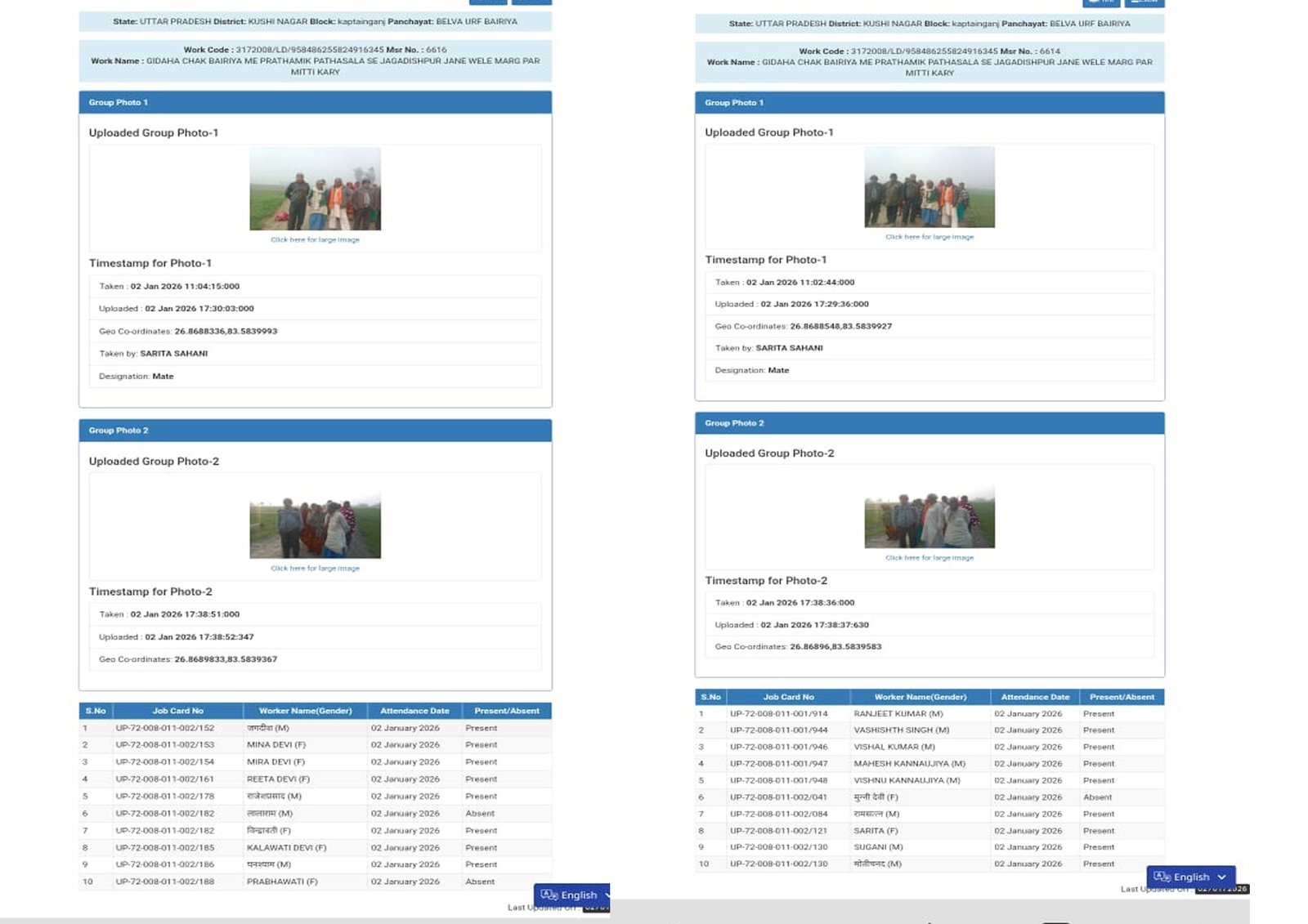 ग्रामसभा बैरिया में प्राथमिक पाठशाला से जगदीशपुर गांव को जोड़ने वाली मार्ग पर बिना मजदूर के मशीनरी रोटावेटर का उपयोग कर मिट्टी को समतल किया गया है और एक ही कार्य पर कई बार मस्टरोंल जारी कर मजदूरों की संख्या अधिक दिखाकर एक ही फोटो को कई जगह लगाकर धांधली की जा रही है। इस संबंध में एपीओ अमित भार्गव से डाक टाइम्स न्यूज की टीम ने सवाल किया कि उपरोक्त मिट्टी भराई स्थान पर कितने मजदूर कार्य कर रहे हैं तो उन्होंने कहा कि नही मालूम कितने मजदूर कार्य कर रहे हैं। एक तरफ सरकार पारदर्शिता की बात कर रहीं है, तो वहीं जिम्मेदारी भ्रष्ट अधिकारियों और कर्मचारियों द्वारा मिलीभगत कर सरकारी पैसे का बड़े पैमाने पर बंदरबांट किया जा रहा है और सरकार की छवि धूमिल की जा रहीं है।
