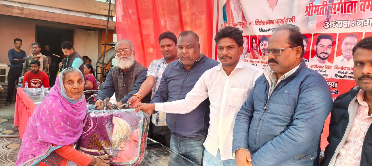 डाक टाइम्स न्यूज खड्डा/कुशीनगर। वर्तमान में बढ़ते कड़ाके की ठंड को देखते हुए दिनाँक 13 जनवरी 2026 दिन मंगलवार को नगर पंचायत खड्डा कार्यालय परिसर में कंबल वितरण कार्यक्रम का आयोजन किया गया। इस कार्यक्रम के दौरान वार्ड संख्या 12 स्वामी विवेकानन्द नगर के जरूरतमंद और पात्र व्यक्तियों को कंबल प्रदान किए गए। कार्यक्रम की मुख्य अतिथि नगर पंचायत खड्डा अध्यक्ष संगीता वर्मा रहीं। इस अवसर पर उन्होंने कहा कि भीषण शीतलहर को देखते हुए नगर पंचायत प्रशासन हर गरीब और असहाय व्यक्ति को राहत पहुँचाने के लिए प्रतिबद्ध है। कार्यक्रम में नगर पंचायत खड्डा अध्यक्ष प्रतिनिधि दुर्गेश्वर वर्मा और पूर्व सभासद इल्तज्जा हुसैन उर्फ अब्बास एवं भाजपा जिला उपाध्यक्ष मनोज जायसवाल ने भी कंबल वितरण कार्यक्रम में शिरकत किए और अपने हाथों से लाभार्थियों को कंबल वितरित किए। इस अवसर पर स्थानीय सभासद असलम अंसारी, सभासद दिवाकर यादव, सभासद राजेश्वर सिंह, सभासद प्रतिनिधि संजय गुप्ता, भाजपा नेता प्रदीप विश्वकर्मा, अनिल गुप्ता, उग्रसेन गुप्ता, आनन्द सिंह, चंदन मद्धेशिया और अनुराग श्रीवास्तव सहित वार्ड के कई गणमान्य नागरिक और वार्ड वासी मौजूद रहे। कंबल पाकर वार्ड वासियों ने नगर पंचायत प्रशासन के प्रति आभार व्यक्त किया। कार्यक्रम के अंत में अध्यक्ष प्रतिनिधि ने आश्वस्त किया कि नगर के अन्य वार्डों में भी इसी प्रकार कंबल वितरण का कार्य निरंतर जारी रहेगा ताकि कोई भी गरीब ठंड की मार से असुरक्षित न रहे।