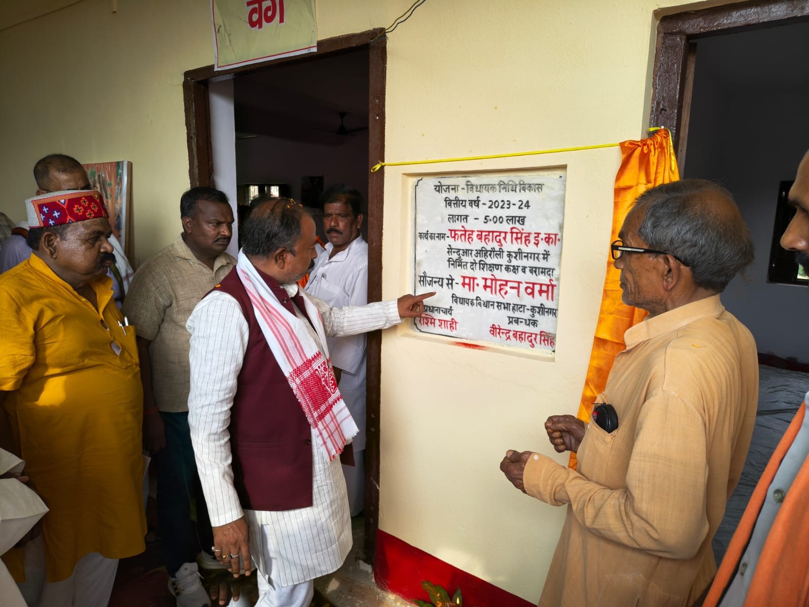 डाक टाइम्स न्यूज कप्तानगंज/सुकरौली। विकास खण्ड सुकरौली के सेंदुआर अहिरौली बाजार स्थित फतेह बहादुर सिंह इंटर कॉलेज में सोमवार को एक महत्वपूर्ण उपलब्धि जुड़ गई, जब हाटा क्षेत्र के विधायक मोहन वर्मा ने विधायक निधि से निर्मित नए शिक्षण कक्ष एवं बरामदे का विधिवत लोकार्पण किया। यह निर्माण कार्य वित्तीय वर्ष 2023-24 की विधायक निधि विकास योजना के तहत लगभग 5 लाख रुपये की लागत से पूर्ण कराया गया है, जिससे विद्यालय की आधारभूत संरचना को मजबूती मिली है।लोकार्पण अवसर पर मुख्य अतिथि के रूप में उपस्थित विधायक मोहन वर्मा ने कहा कि गुणवत्तापूर्ण शिक्षा के लिए बेहतर संसाधनों का होना अत्यंत आवश्यक है। उन्होंने विद्यालय परिवार को इस सराहनीय कार्य के लिए बधाई देते हुए कहा कि इस नई व्यवस्था से विद्यार्थियों को सुविधाजनक और प्रेरणादायक वातावरण में अध्ययन का अवसर मिलेगा। इस कार्यक्रम में सुकरौली ब्लॉक प्रमुख रंजना पासवान, जय प्रकाश शाही, जितेंद्र सिंह, विद्यालय प्रबंधक मनीष सिंह एवं प्रधानाचार्या रश्मि शाही सहित सत्येंद्र सिंह, बाबुनंदन सिंह, अभय प्रताप सिंह, सर्वेश त्रिपाठी, संतोष सिंह, मनोज कुमार पाण्डेय, विनोद कुमार सिंह, नंदू सिंह समेत अनेक गणमान्य नागरिक उपस्थित रहे। कार्यक्रम के दौरान विद्यालय परिसर में उत्सव जैसा माहौल देखने को मिला। स्थानीय लोगों ने इस पहल को क्षेत्र में शैक्षिक विकास की दिशा में एक महत्वपूर्ण कदम बताते हुए सराहा।