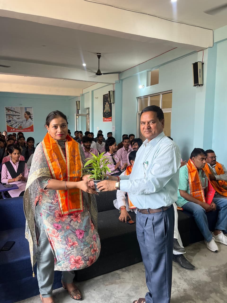Daktimes News कप्तानगंज। पृथ्वी दिवस के अवसर पर कप्तानगंज स्थित जेपी फार्मेसी कॉलेज के सभागार में एक विचार गोष्ठी का आयोजन किया गया। कार्यक्रम में पर्यावरण संरक्षण के प्रति जागरूकता फैलाने के साथ ही वृक्षारोपण कर हरित पृथ्वी का संकल्प लिया गया। कार्यक्रम का शुभारंभ दीप प्रज्ज्वलन से हुआ, जिसके पश्चात छात्राओं ने माँ सरस्वती की वंदना प्रस्तुत कर वातावरण को भक्तिमय बना दिया। इस अवसर पर मुख्य अतिथि वन दरोगा वीके सिंह, विशिष्ट अतिथि डॉ. रीना सिंह, ज्ञानवर्धन गोविन्द राव तथा संस्था के संरक्षक श्रीराम प्रसाद उपस्थित रहे। गोष्ठी के दौरान डॉ. रोहित कुशवाहा और डॉ. आशीफ अंसारी ने पावर प्वाइंट प्रस्तुति के माध्यम से प्रदूषण मुक्त और स्वच्छ पृथ्वी के निर्माण पर विस्तार से चर्चा की। उन्होंने कहा कि किसी भी देश की सबसे बड़ी पूंजी उसका वन क्षेत्र होता है, लेकिन
